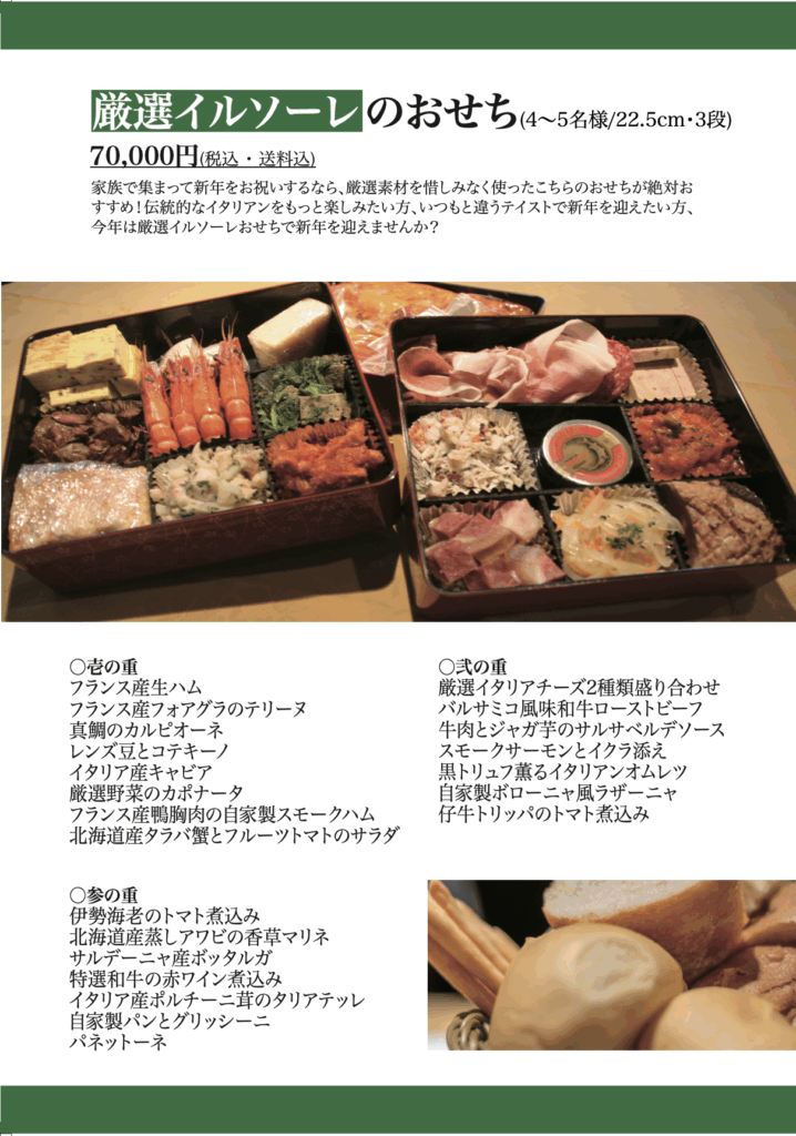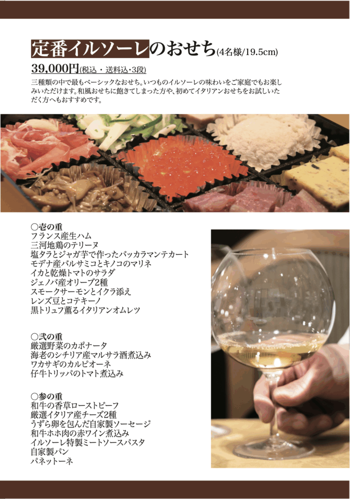 ・39,000円:定番イルソーレのおせち(税込・送料無料)